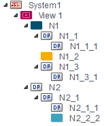 The WinCC OA system name and the view name are not part of the server's address space. The first level of the address space is always the first level of the defined CNS view which means the first node.
