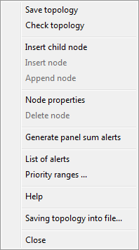 A tree object is embedded on the left-hand side. This object is a tree view (same format as used in Explorer) and shows all the panels with intermediate nodes that are contained in the topology.