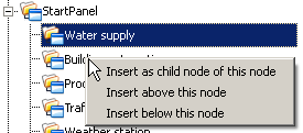 The node named "..." already displayed below the StartPanel in the tree view is the predefined structure of the independent process displays mentioned in the Basic Information page. The complete system management section and its panels are reproduced in this hierarchy. You can edit this structure or add elements to it.
