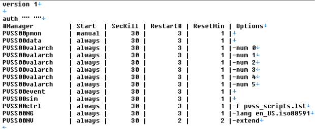 - Restart#: Specifies how often a manager is restarted (at most) within the set minutes of ResetMin after the manager was stopped or crashed.