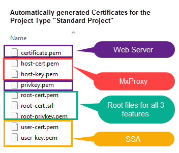 The MxProxy certificates are for Multiplexing Proxy.