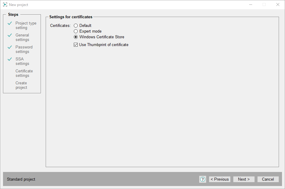 Settings for Certificates - Expert Mode: