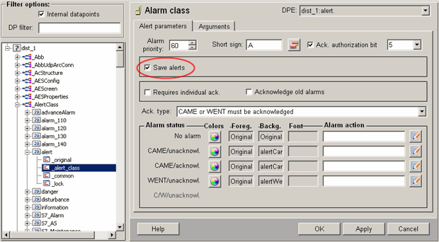 In order to add an alert handler config to a datapoint (element), right-click on it in the PARA module and select Add Config. Then simply select the alert handler config, set the parameters and set the handler to active (for more details, see chapter _alert_hdl (Alert handling) and Creating a datapoint).