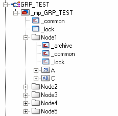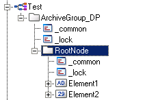 Consider the datapoint structure and create it via the PARA module. In this example, a datapoint type "Test" is created. The datapoint structure contains a root node and two sub elements "Element1" and "Element2". The datapoint "ArchiveGroup_DP" is created.