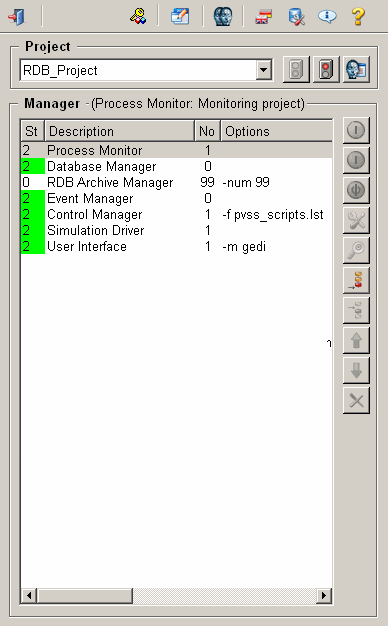- If the start of the RDB manager was successful, the start mode can be change in the WinCC OA Console from "manually" to "automatically".