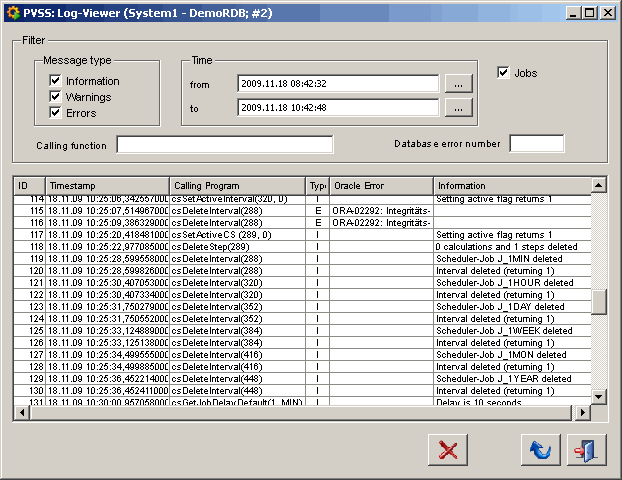 With the aid of the check boxes the selection of the type of the messages, which should be displayed in the RDB log viewer, takes place. In the RDB log viewer either information, warnings or errors and their combinations can be displayed.