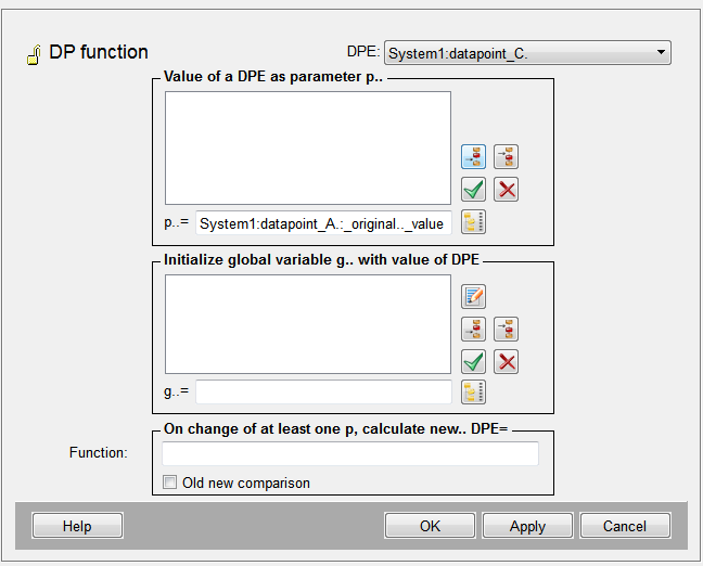 - Click the button Apply and then OK to store the function for the datapoint "datapoint_C".