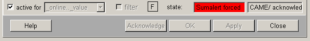 AcknowledgeBy clicking on this button, a pending alert will be acknowledged, if one exists.