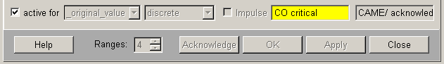 - Each alert range has an assigned alert text (CAME text and/or WENT text) and alert class in addition to its limiting values.