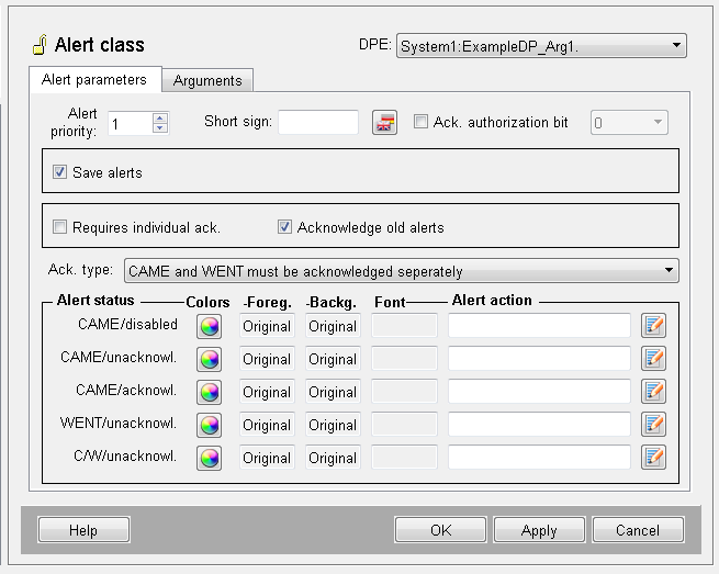 - Not acknowledgeable: The alert range can only be in "CAME/acknowledged." or "CAME/disabled" state. Normal state is only achieved by a going value change, it is not possible to acknowledge!