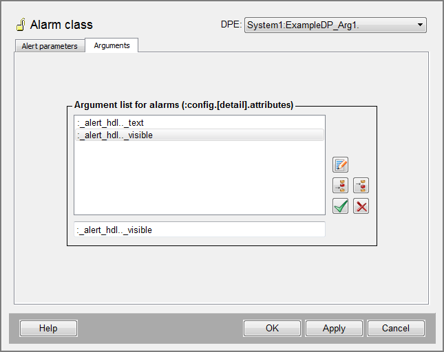 - The arguments must be entered in the input box in the form ":_alert_hdl.._text", ":_alert_hdl.._visible".