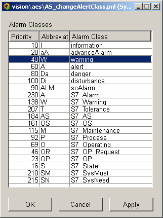 Datapoints of the internal "_Alertclass" type are intended to allow you easy allocation of alert classes to alert ranges. There are 7 default alert classes.