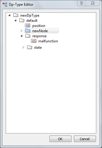 You can add nodes, rename or delete them. Please see Figure "The DP-type Editor - creating a new datapoint type".