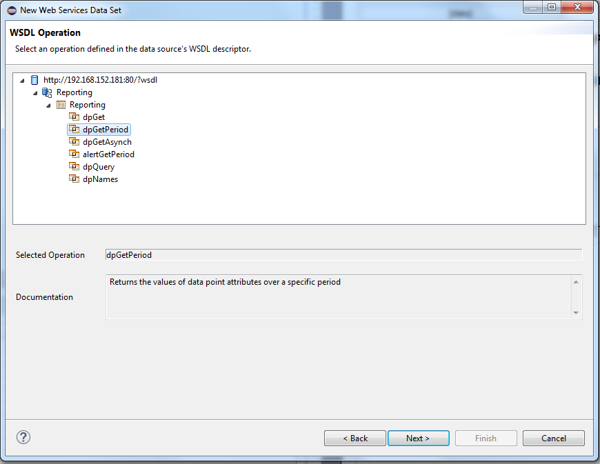 Select the function type dpGetPeriod after creating and naming a new data set (see chapter data set) and click on Next>.