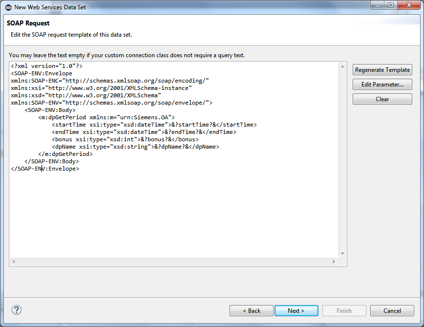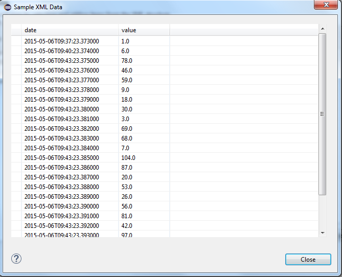 As mentioned in the chapter alertGetPeriod, you have to specify default values for the parameters in order to use the "Show Sample Data" button. If the default values are set, you can check the settings before completing the configuration.