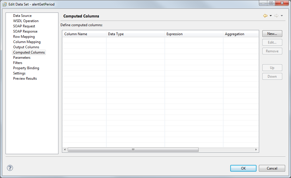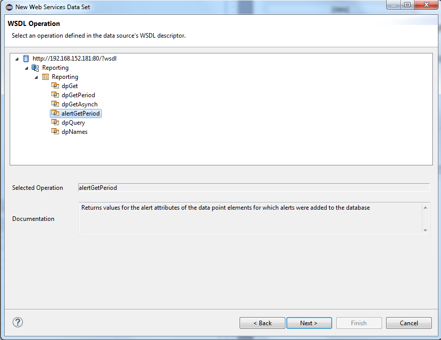 Select the function type alertGetPeriod after creating and naming a new data set (see create data set) and click on Next>.