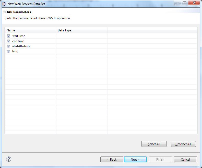 Shows the parameters that are available for the configuration. Select the parameters and click on Next>
