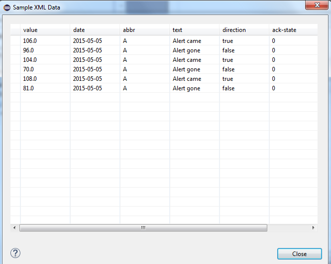 Repeat this step for the elements "date", "abbr", "text", "direction", "ack-state" and "ack-time". Select the correct data type for each element.