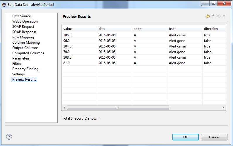 As mentioned before, you have to specify default values for the parameters in order to use the Show Sample Data button. If the default values are set, you can check the settings before completing the configuration.