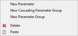 The following context menu can be displayed with a right-click on the Report Parameters in the Data Explorer: