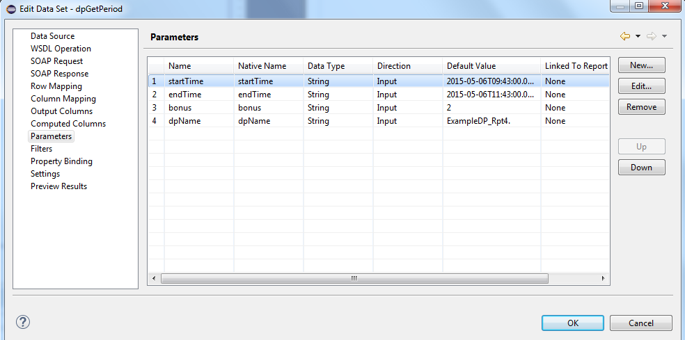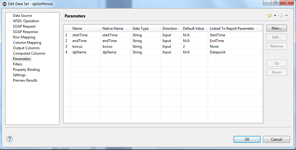 Open the Edit Data Set menu of the appropriate data set (e.g. double click on the data set dpGetPeriod) and click on the menu item Parameters.