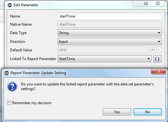 In order to link the data set parameters with the report parameters, proceed as follows: