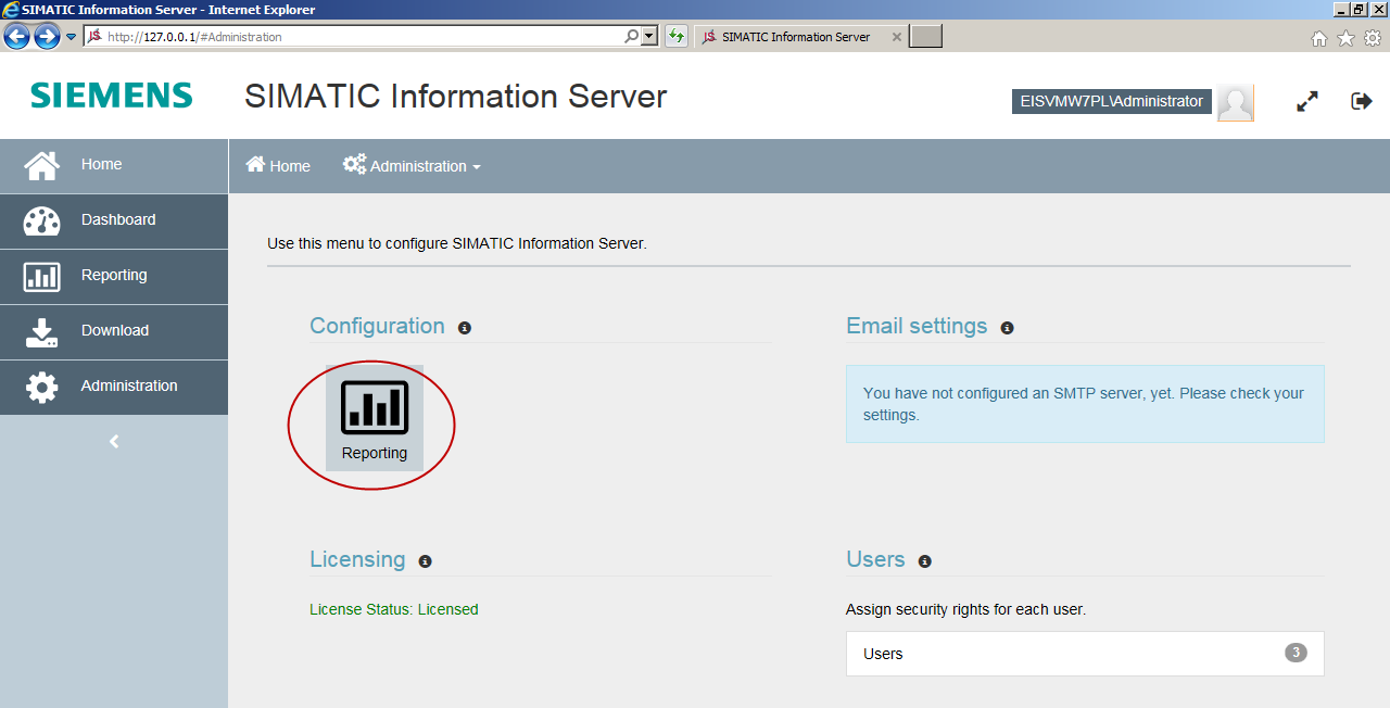 Figure 3. SIMATIC Information Server: Configuration: Reporting