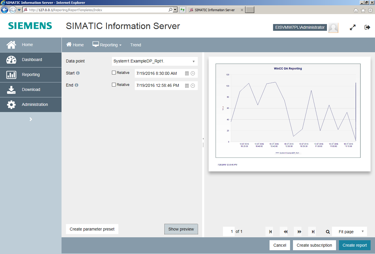 SIMATIC Information Server - How to display WinCC OA data-based reports