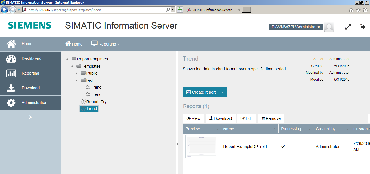 Figure 10. SIMATIC Information Server: Create Report