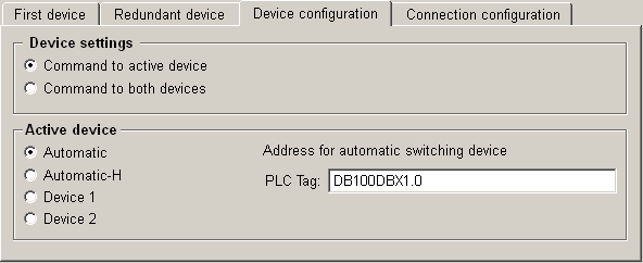 Automatic-H: Defines that device 1 is active if "0" is read from the PLC TAG, or device 2 is active if "1" is read from the PLC Tag.