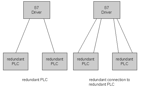 The figure below shows the normal (non redundant) case and the case with redundant connections to one PLC.
