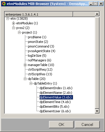 Select the datapoint element whose value should be mapped to this datapoint, via the MIB browser.