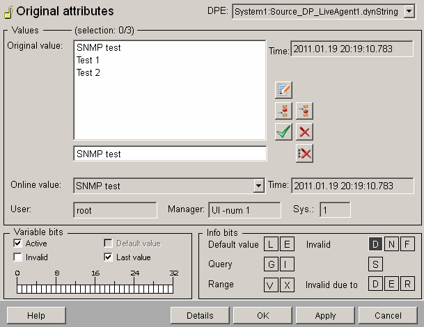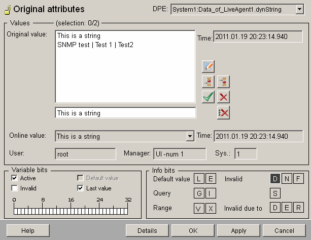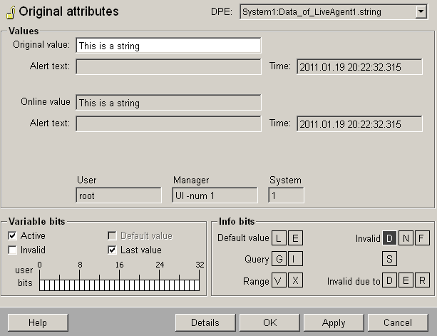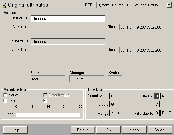 Figure 14. Several values on the target datapoint "Data_of_LiveAgent1" (DynString element)