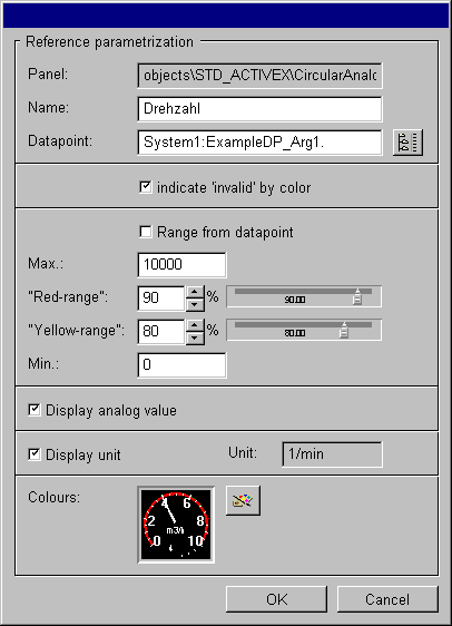 Display analog value: If selected, the current value is displayed below the pointer display.