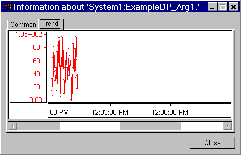 On a second tab you can observe the trend display of the related online value (e.g. you can use a STD_SIMULATOR to send a value to the same DPE):