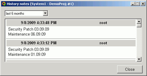 In the panel the last note will be shown. The history shows all notes.