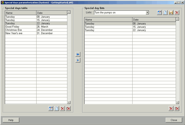 The special days configuration panel allows to create a scheduler holistic special day list. Out of this list a user-defined number of schedule specific configurations can be deduced. So each schedule can be provided with it’s own list of special days.