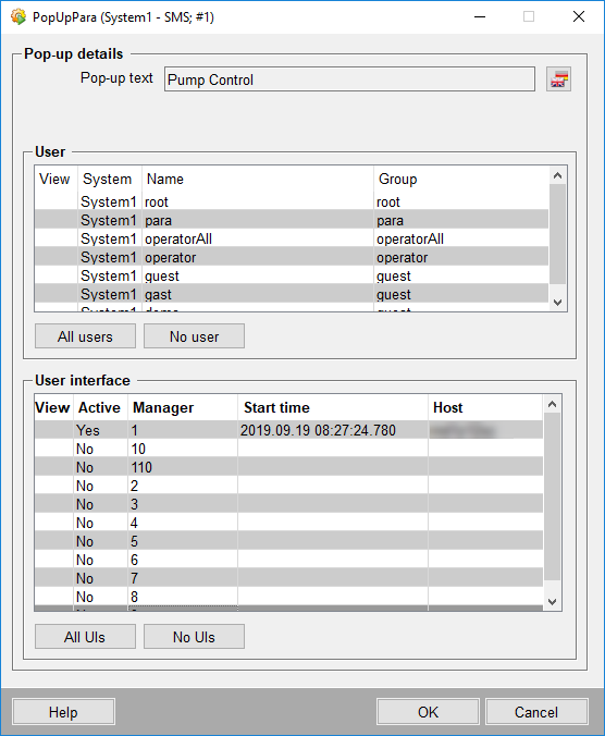 Shows a pop-up on the configured user interfaces. For details, see the chapter pop-up configuration.