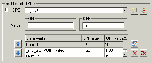 On the top a datapoint element list can be created and will be set on the values you defined if the condition is fulfilled.