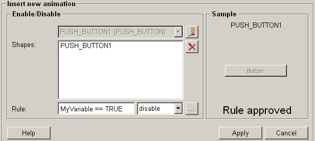 The rule defines under which circumstances to enable or to disable the selected graphical object when the color is applied to the selected graphical objects. A rule is defined using a logic condition. For more information about the logic conditions in the ScriptWizard please refer to conditions.