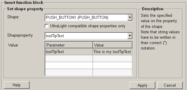 For more information about the function "set shape property" please refer to the WinCC OA 3.11 online help by clicking on the push button "Help".