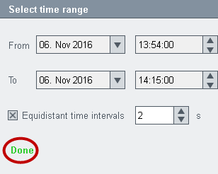 When the calculation is ready, the text "Done" is shown in the "Select time range" area.