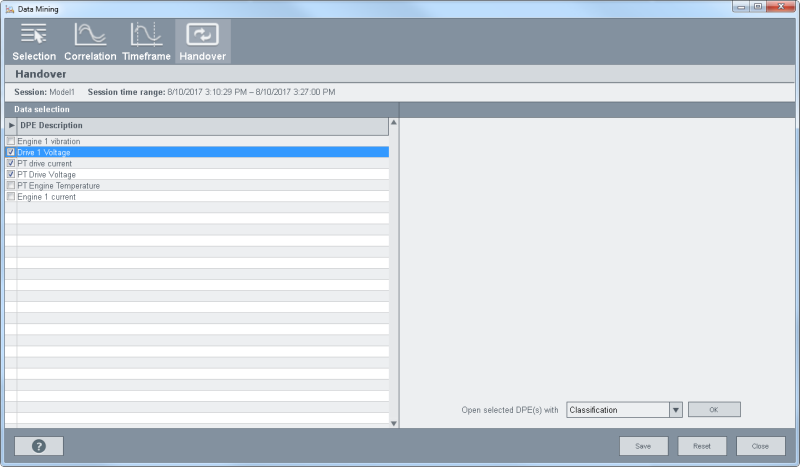 In the "Handover" panel you can hand the datapoint configuration over to the classification panel.