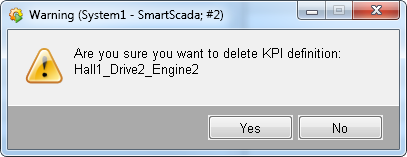 To delete a KPI definition, select the KPI definition and click on the X button in the bottom bar of the panel. Confirm the dialog with "Yes".