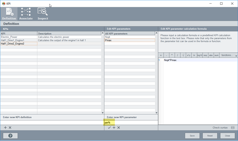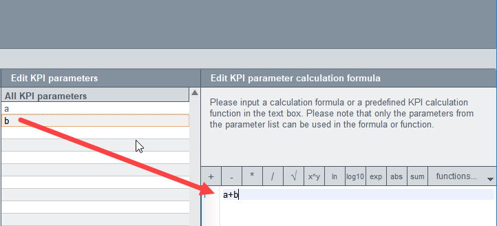 KPI Parameter Definition allows you to specify new parameters for the function formula. Enter the parameters into the "Enter new parameter" text field and press Enter.