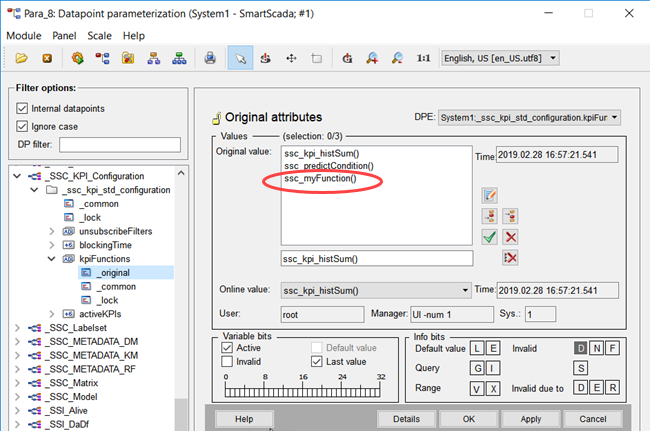 Add the function (formula) to the formula table by editing the datapoint _SSC_KPI_Configuration: