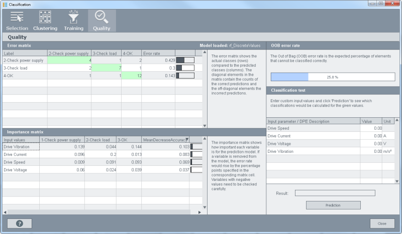 In the training panel, generate the model "DiscreteValues" by clicking the button "Calculate model".