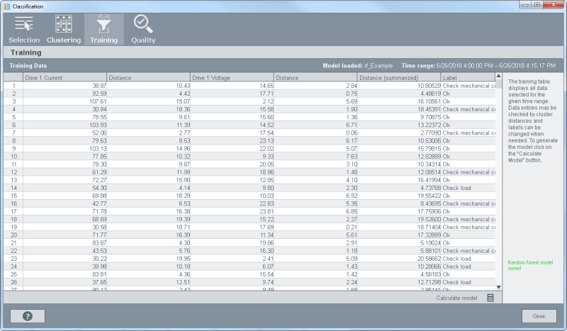 - Click the "Calculate model" button to train the data of the random forest model.