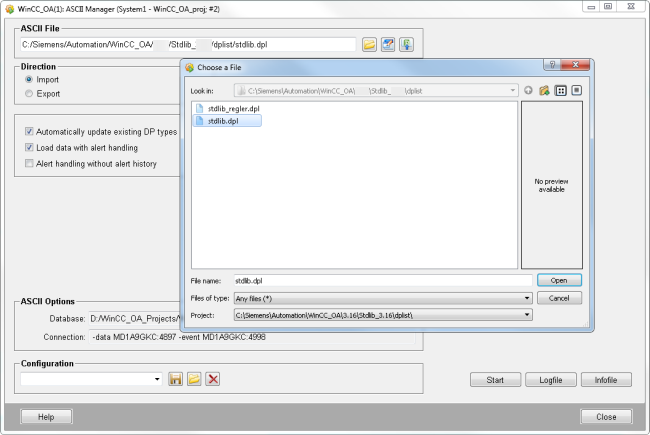 This section describes how to use the "Standard Object Library Setup" Panel. If you want to create the datapoint type and a symbol manually, continue with the step "Import the Stdlib Datapoint Types".