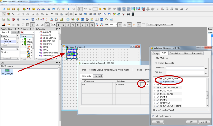 Drag and Drop "GAS_Valve_m" from the project catalog to the test panel and assign your DP to the dollar parameter (double-click on the symbol).